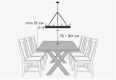 Мы рекомендуем оставлять примерно 75–90 см между нижней частью светильника и поверхностью обеденного стола. Ширина вашего светильника должна быть как минимум на 15 см уже, чем ширина вашего стола.