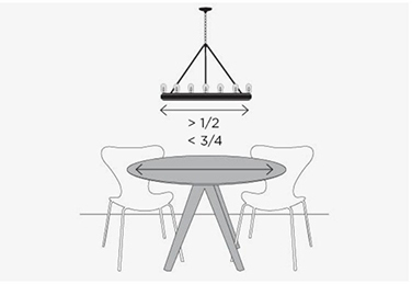 Мы рекомендуем оставлять примерно 75–90 см между нижней частью приспособления и поверхностью стола. Выбирайте светильник шириной от 1/2 до 3/4 диаметра круглого стола.
